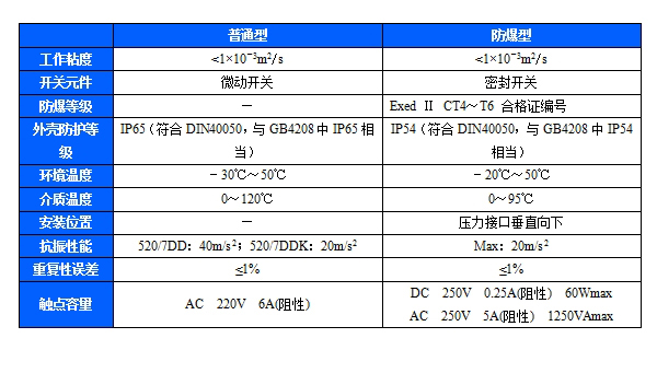 520/7DD差壓開關(guān)采用波紋管式的傳感器,可用于空氣、氣體、水蒸汽等中性氣體和水、制冷劑、油等液體介質(zhì)。520/7DD差壓開關(guān)的設(shè)定值可調(diào),調(diào)節(jié)范圍0.02~1.6MPa,工作壓力范圍0.05~2.5MPa。