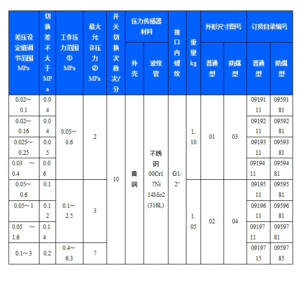 540/7DD防爆差壓開關(guān)采用波紋管式的傳感器,可用于無腐蝕性的氣體和液體介質(zhì)。540/7DD防爆差壓控制器的設(shè)定值可調(diào),調(diào)節(jié)范圍0.02~3MPa,其工作壓力范圍0.05~6.3MPa。