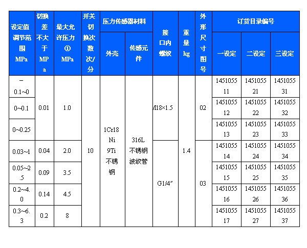 500/6D多值壓力開(kāi)關(guān)可用于腐蝕性氣體,液體等介質(zhì),設(shè)定值調(diào)節(jié)范圍-0.1~6.3MPa。