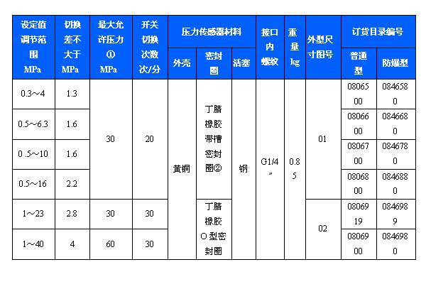 505/7D壓力開關(guān)采用無(wú)泄漏活塞式的傳感器,可用于含油霧的壓縮空氣及其他對(duì)壓力傳感器材料無(wú)腐蝕作用的含油霧氣體和液壓油、水油乳濁液及潤(rùn)滑性能良好的中性液體介質(zhì)。505/7D壓力開關(guān)的設(shè)定值可調(diào),其調(diào)節(jié)范圍0.3 ~ 40MPa。
