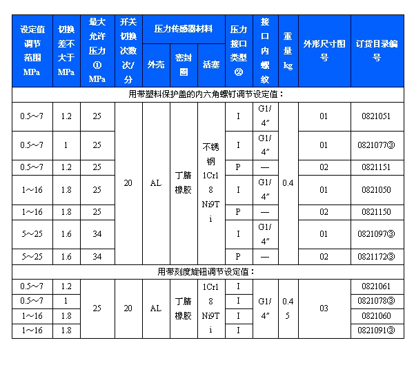 505/8D壓力開關(guān)采用無泄漏活塞式的傳感器,可用于含油霧壓縮空氣等中性氣體和液壓油、水油乳濁液及對(duì)壓力傳感器材料無腐蝕作用的有良好潤(rùn)滑性能的液體介質(zhì)。505/8D壓力開關(guān)的設(shè)定值可調(diào),調(diào)節(jié)范圍0.5~25MPa。
